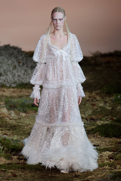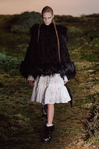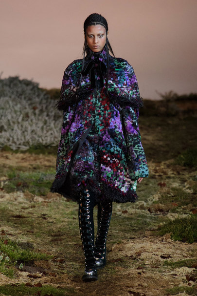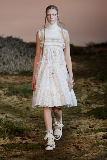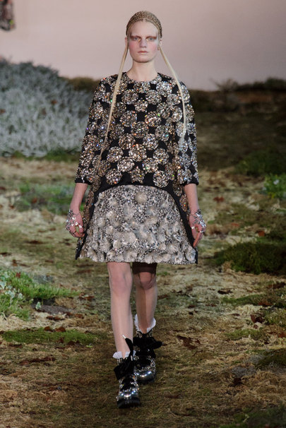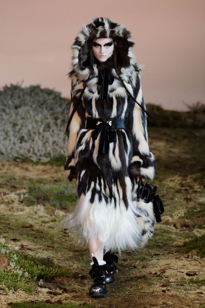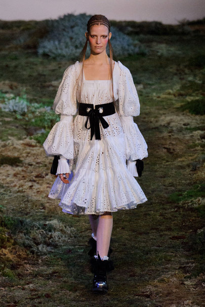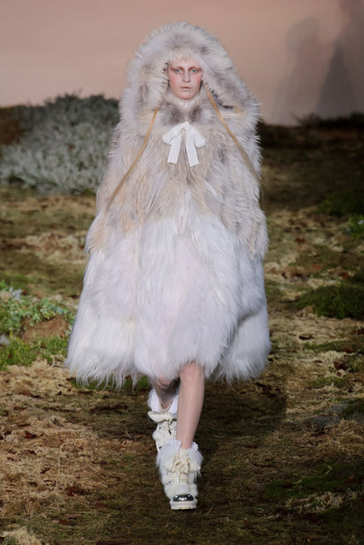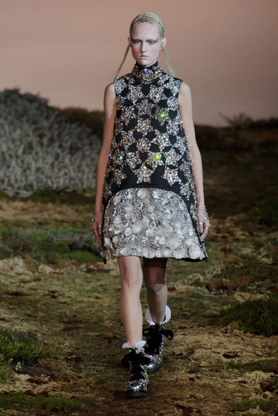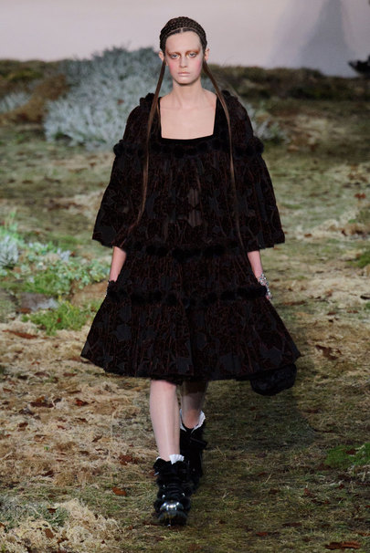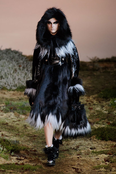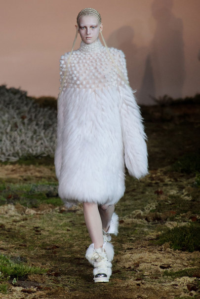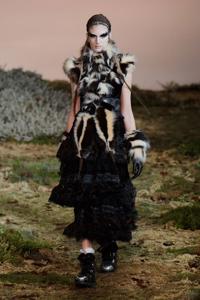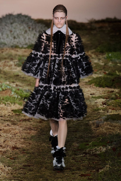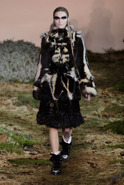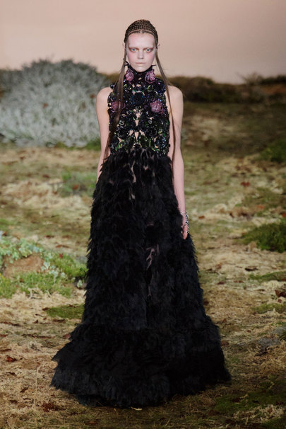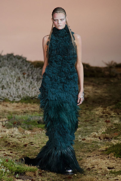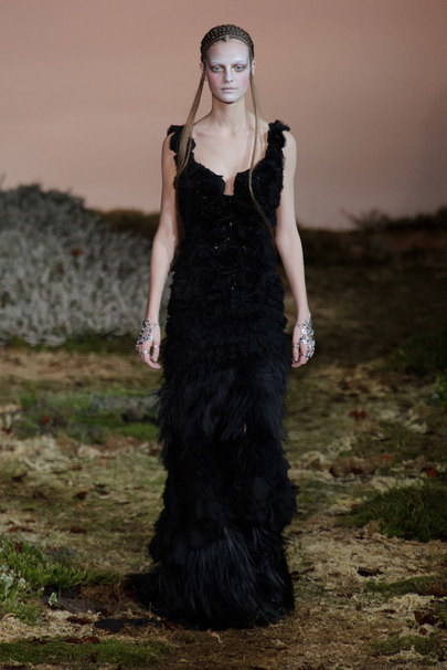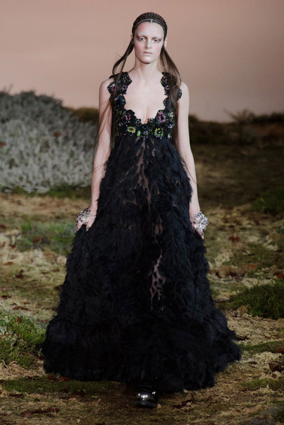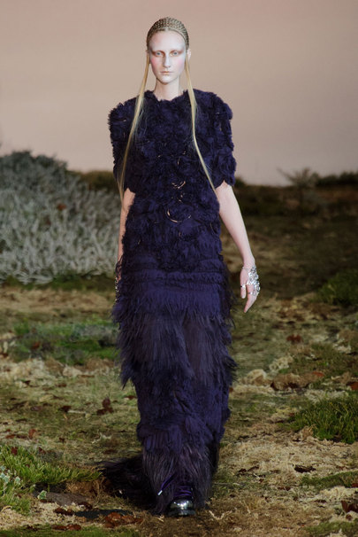 С первого же выхода моделей на подиум в коллекции Осень-Зима ода заметна сама сущность МакКуина. Такое впечатление, что он где- то рядом, подсказывает Саре Бёртон, как создать коллекцию, полностью удовлетворяющую его запросы. Сара Бёртон в очередной раз сотворила шедевр, непохожий ни на одну из коллекций других Домов Моды. Прекрасное воплощение эльфов в нашем мире. Чарующие модели в сказочном макияже и мехах ходили по подиуму, рассказывая свою историю.