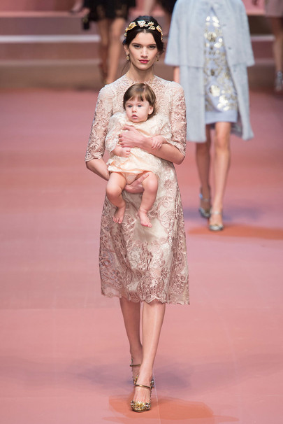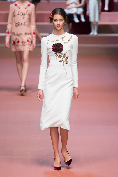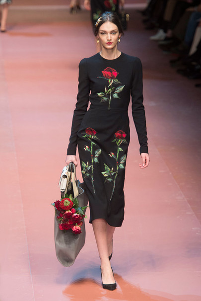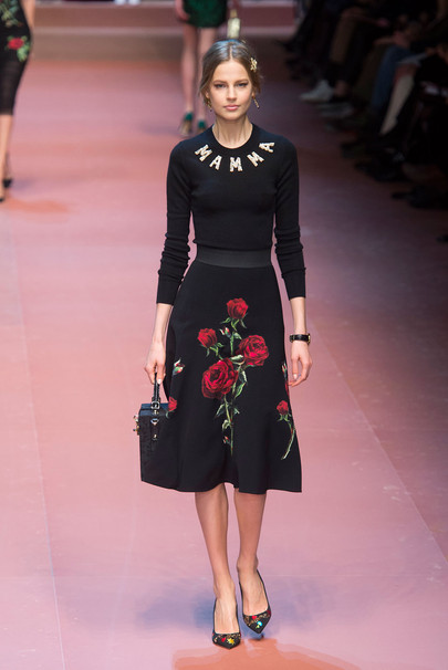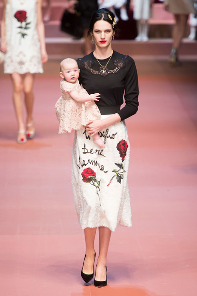 DOLCE & GABBANA на Неделе моды в Милане вновь произвели фурор. Их все новые и новые идеи в моде просто невероятны. Модная беременность в исполнении Доменико Дольче и Стефано Габбана просто волшебна. Они остались верны своему вкусу. Поэтому в данном показе были продемонстрированы яркие цвета, облегающие ткани, необычные текстуры, хлопок и полиэстер сочетаются необычайным образом в руках Габбана и его соратника Доменико. Красота этих платьев видна сразу, яркие бутоны цветов дополняют образ, придавая им дерзости. Ведь беременность это не только нежные розовые, кремовые и голубые оттенки. Девушки бывают разные, и это замечательно было показано DOLCE & GABBANA на Неделе моды в Милане.