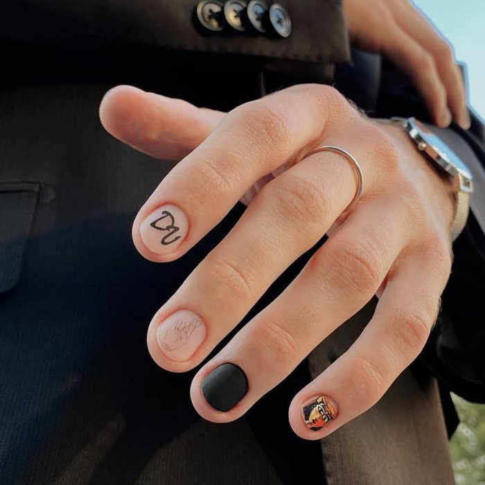 Маникюр является неотъемлемой частью ежедневного ухода за руками. Коллекция "Красивый мужской маникюр (61 фото)" отражает все разноображение вариантов в одном стиле. Смотрите и другие коллекции идей, например:«Коричневый маникюр гель (70 фото)» и «Красивый дорогой маникюр (69 фото)». Здесь Вы найдете самые модные тренды, классические формы и цвета, а также яркие насыщенные маникюры с рисунками, росписью, со стемпингом и наклейками, для повседневной носки и на праздники. Вы можете выбрать расцветки и дизайн маникюра для своих ногтей, выбирая на фотографиях.