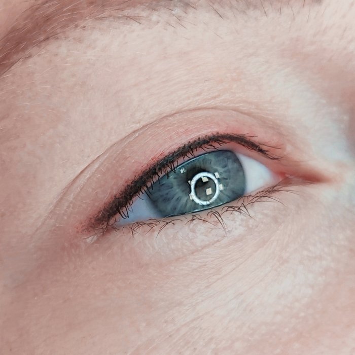 ![Перманентный макияж межресничного пространства с растушевкой]()