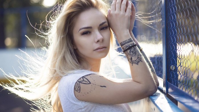Девушка блондинка с тату