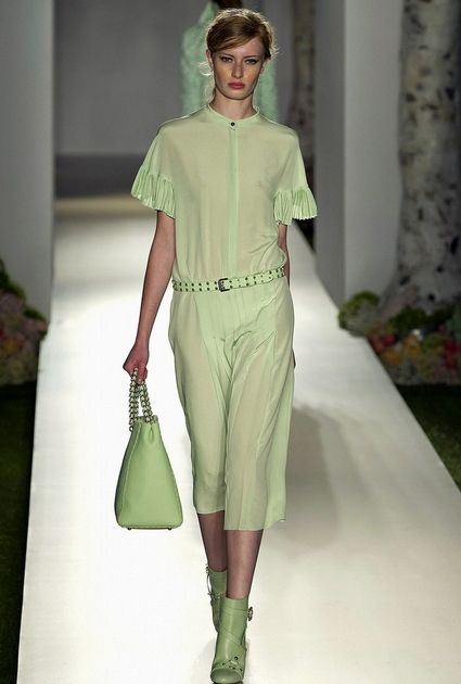 Для прогулки стилисты рекомендуют сочетать фисташковое платье с розовыми, нежно-голубыми и даже желтыми цветами. Розовые туфли или балетки, голубой пиджак или желтый пояс – это гарантия яркого и стильного образа. Здесь же пригодятся и массивные красочные украшения.