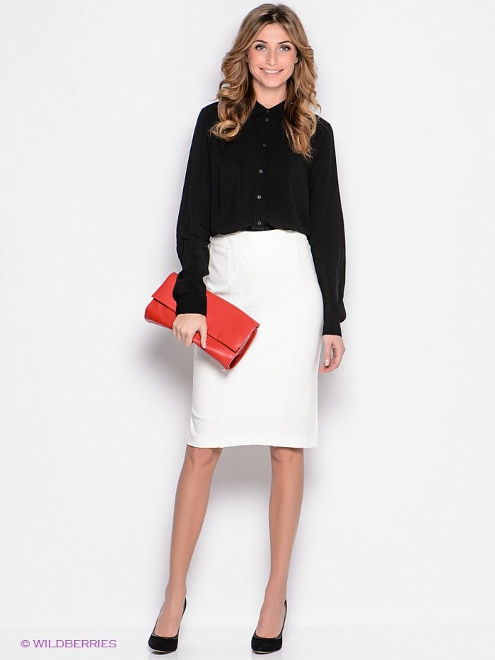 В офисе лучше всего будет смотреться модель юбки "карандаш" или облегающий фасон длиной ниже колен. Для деловых ансамблей предпочтите спокойные нейтральные оттенки. В офисных образах допустим лишь один привлекающий внимание акцент. Этим акцентом могут стать яркие туфли, контрастный тонкий ремень на талии, шейный платок или брошь. Образы для вечеринки позволяют разгуляться фантазии. Собираясь на вечеринку, обязательно возьмите миниатюрную сумочку на длинном ремешке, которую при необходимости вы сможете использовать в качестве клатча. Обувь можно выбрать контрастную юбке по цвету, но проследите, чтобы этот тон присутствовал в каком-нибудь аксессуаре.