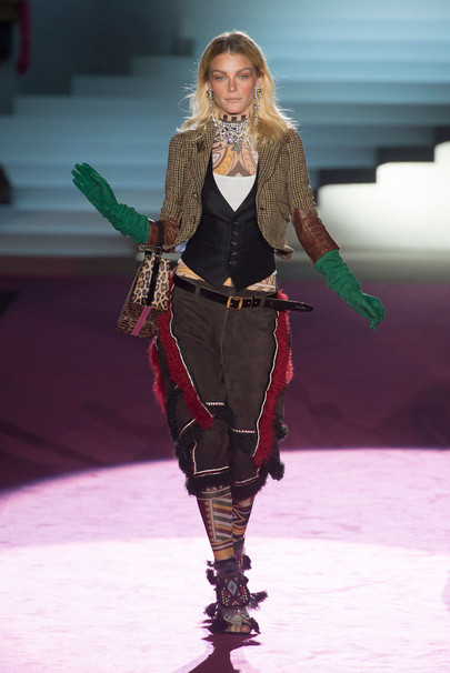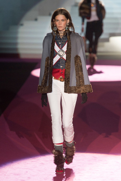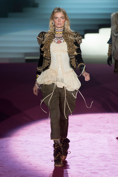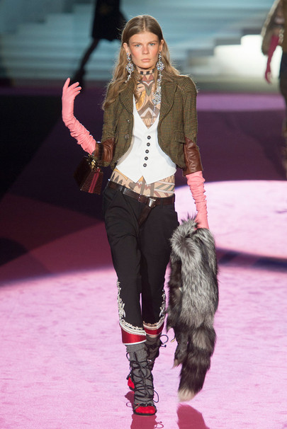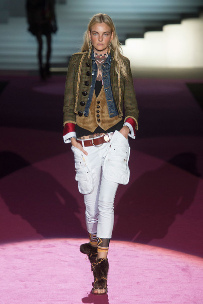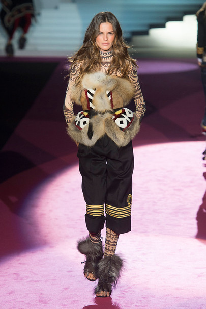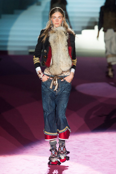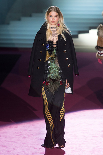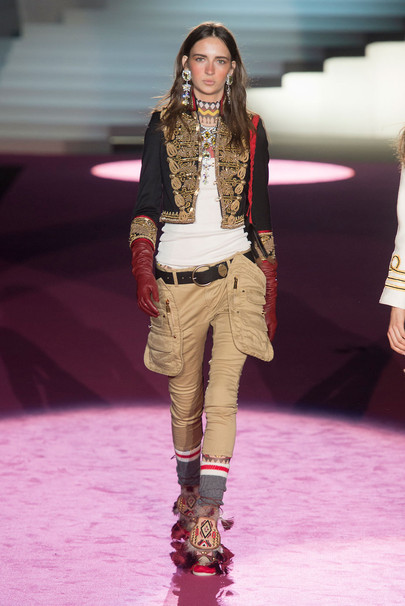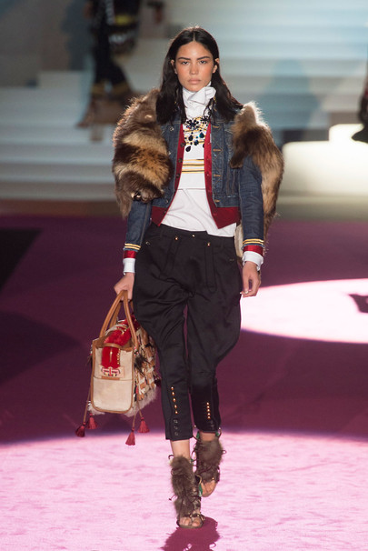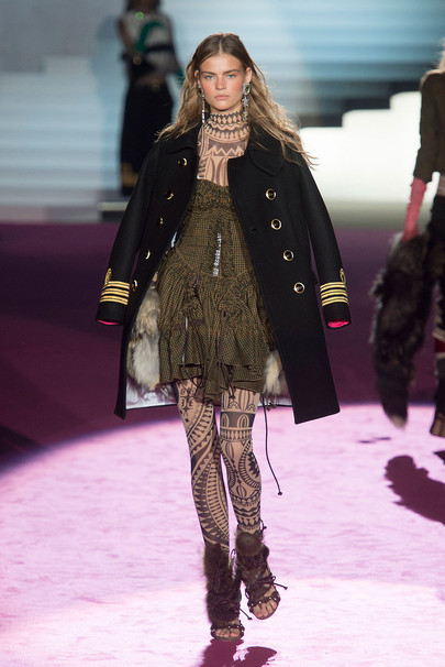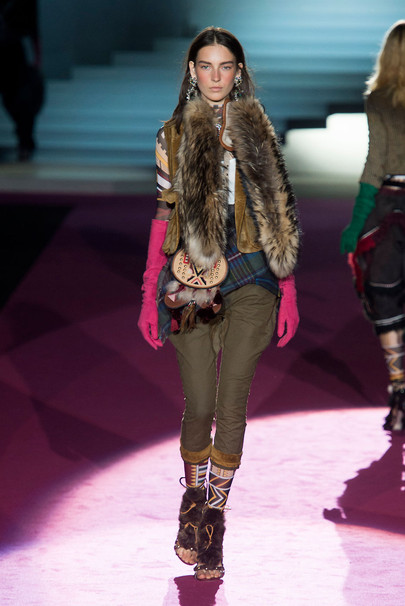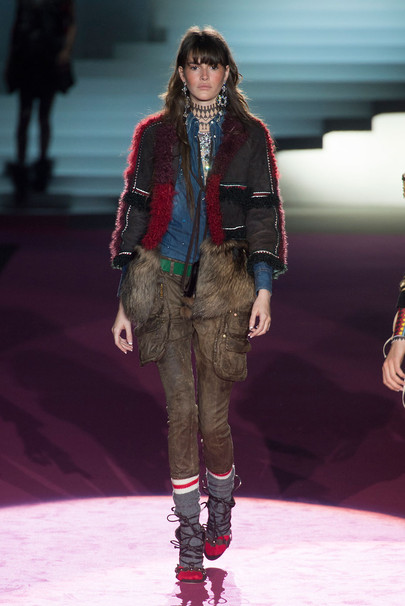 DSQUARED2 Осень-зима 2015-2016 - проел очередной показ на неделе моды в Милане. 2015 год в моде- год новинок, природной эстетики, райских островов, красок и яркости. На показе этой коллекции Дин и Дэн Кейтены всегда отличаются особой колоритностью своих нарядов. Судя по фото, они попытались навеять модной публике индейские мотивы. Вновь в моде многослойность в одежде, перья, имитация татуированного тела, огромные накладные карманы и, конечно же, платья - мини или же в пол.