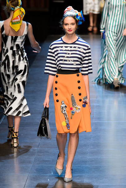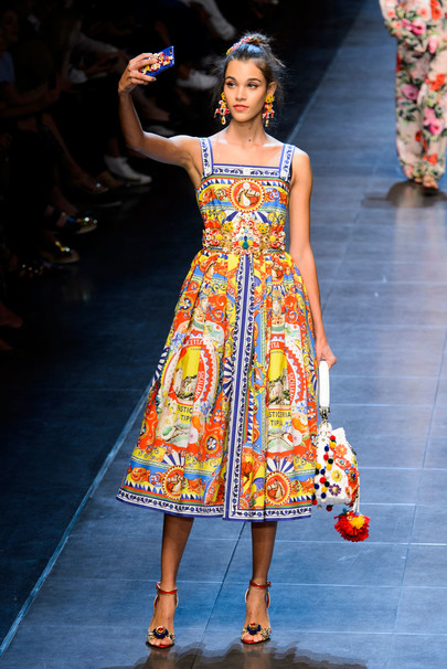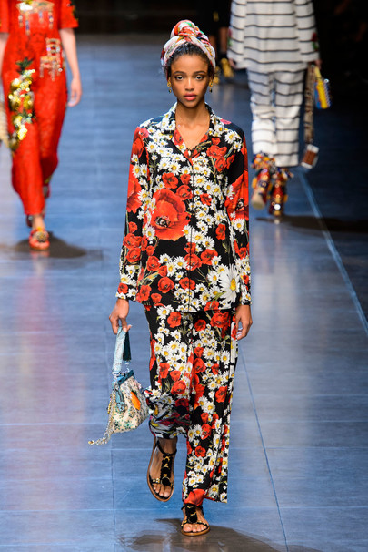 Коллекция Дольче Габбана весна лето 2016 полна цвета. Она такая яркая и насыщенная жизнью. На подиуме ходили модели в пижамных костюмах из атласной и шелковой ткани. Такие костюмы дизайнеры Доменико Дольче и Стефано Габбана предлагают носить летом 2016 года, как основной тренд сезона. Дольче Габбана 2016 женская коллекция - это экспрессия, Италия в каждой частичке всего lookа. Прямо на подиуме модели фотографировались на Iphone и он-лайн выкладывали свои фото.