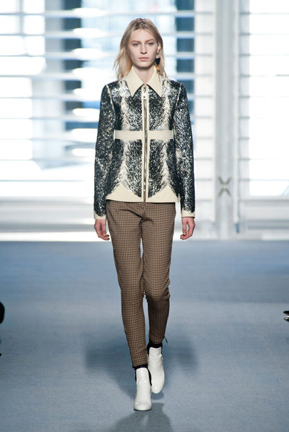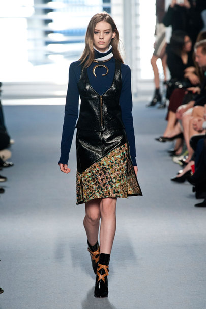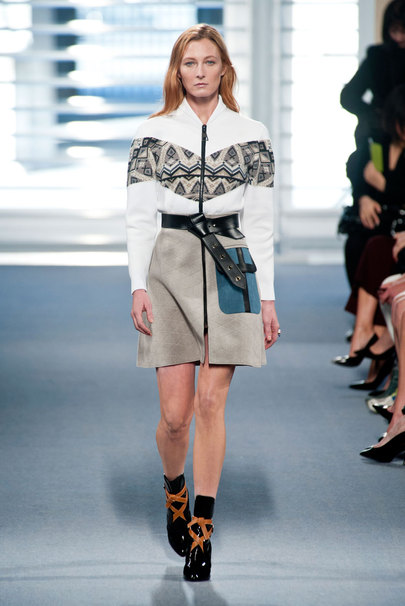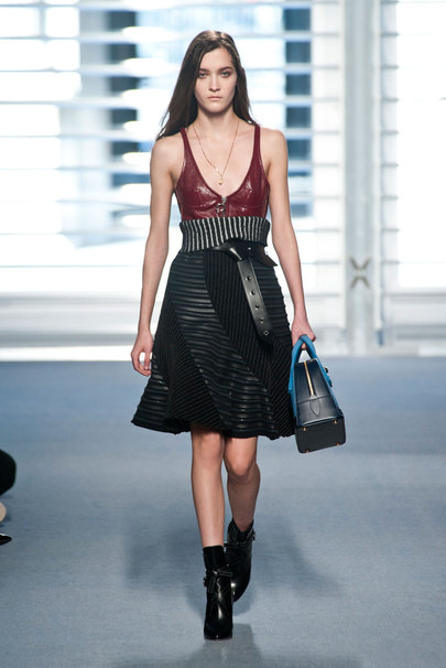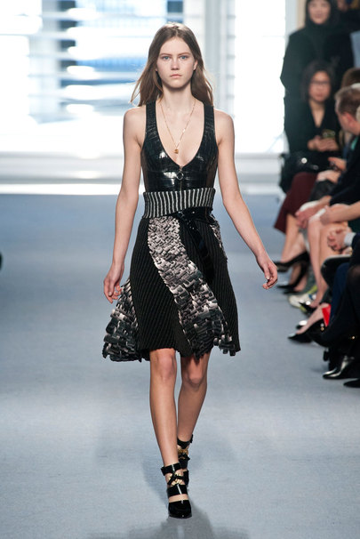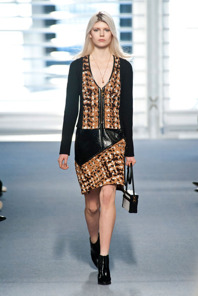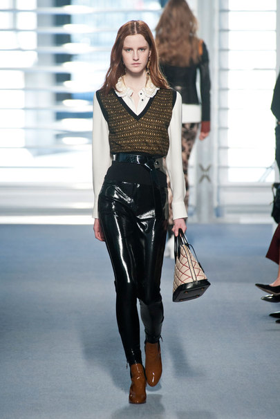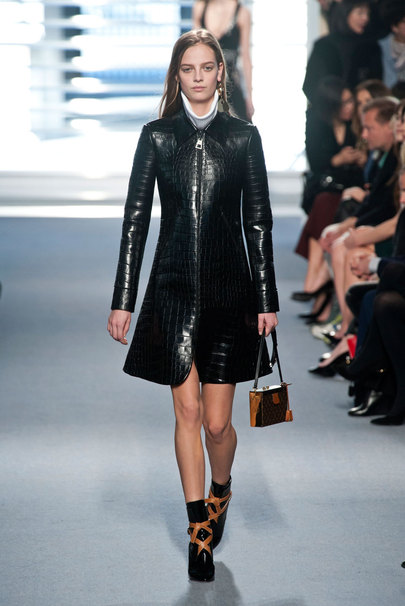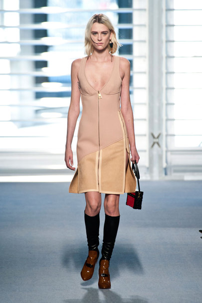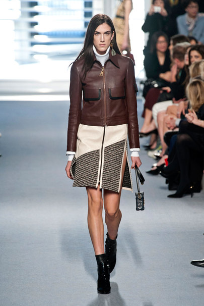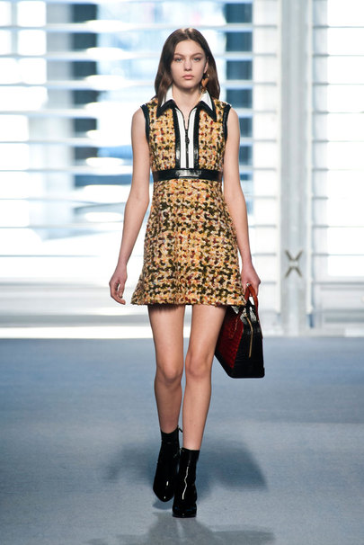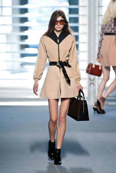 Креативный директор модного дома LOUIS VUITTON Николя Гескьер показал свою первую коллекцию в новой должности. С уходом Марка Джейкобса, коллекция потеряла тот невероятный шик и невероятную яркость при прежнем дизайнере. Великолепные модели ходили по подиуму в абсолютно носибельных вещах. Но при этом одежда и аксессуары выглядят очень красивыми и даже необычными. Коллекция создана специально для любительниц городского шика, что также прослеживается и в легком пастельном макияже.