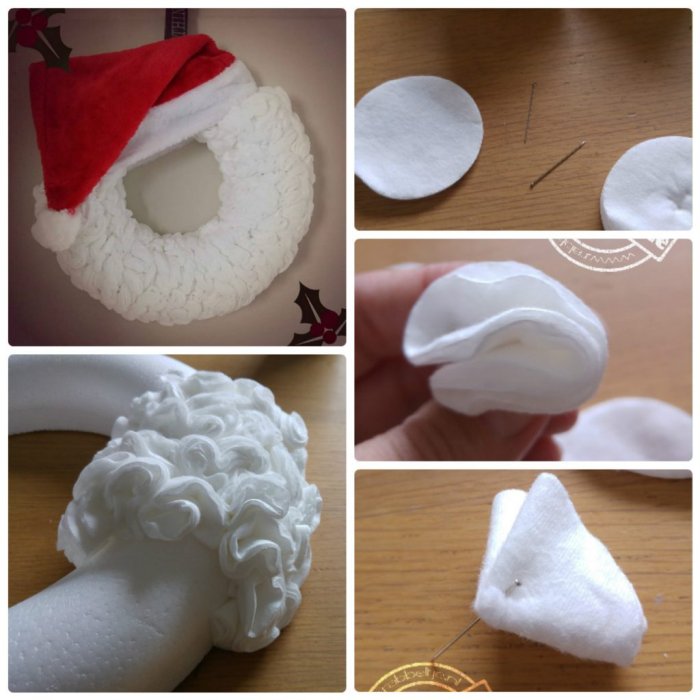 Голова Деда Мороза из ватных дисков