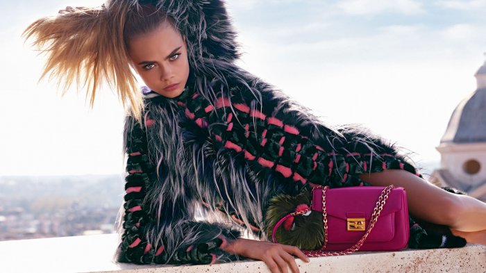 И вновь Кара Делевинь для FENDI представила оченедную коллекцию. Осенне - зимняя коллекция этого модного бренда - яркая, сочная, меховая! Как впрочем бывает очень часто. FENDI - один из самых любимов брендов и домов моды модели. И не только из за идеального кроя одежды и красивых аксессуаров. Но также и потому, что креативный директор Фэнди - знаменитый модельер Карл Лагерфельд - друг и идейный вдохновитель Кары!