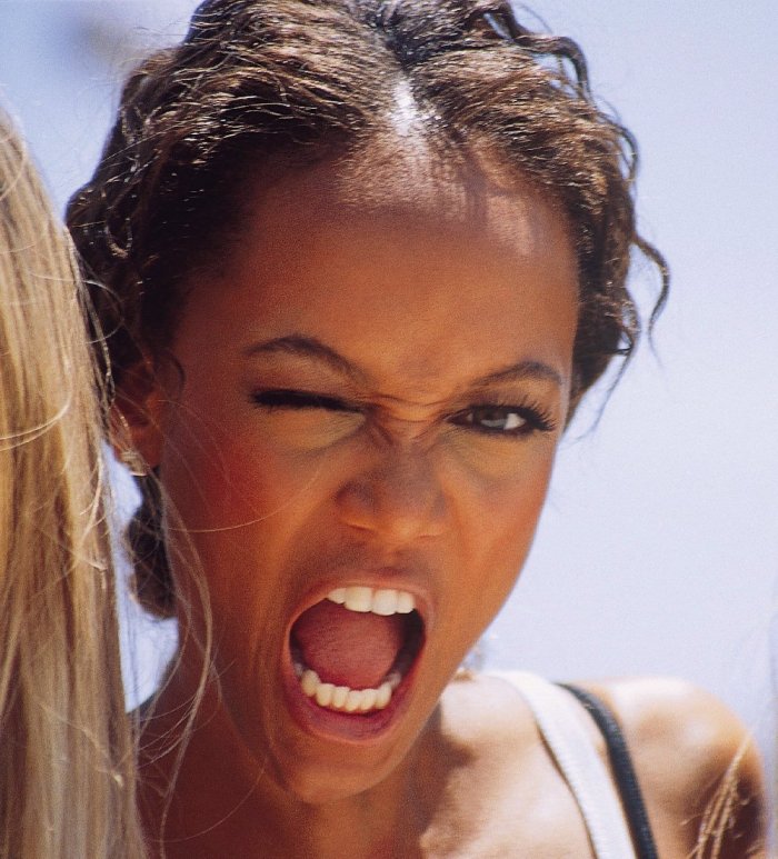 Тайра Бэнкс в молодости просто безупречна! Ее кожа темно-медового цвета на фоне остальных девушек- моделей и, в частности, ангелов Виктории Сикрет, очень выделяется. Да и лицо девушки также: она часто снимается для модных косметических брендов, ее внешность хотят видеть многие дизайнеры Нью-Йорка и других столиц моды в своих рекламных роликах. Компании приглашают супермодель 90-х на показы, она снимаетя в кино и ведет популярнейшую телепередачу Топ-модели по-американски. Молодая Тайра - это яркость, позитив и голливудская улыбка!