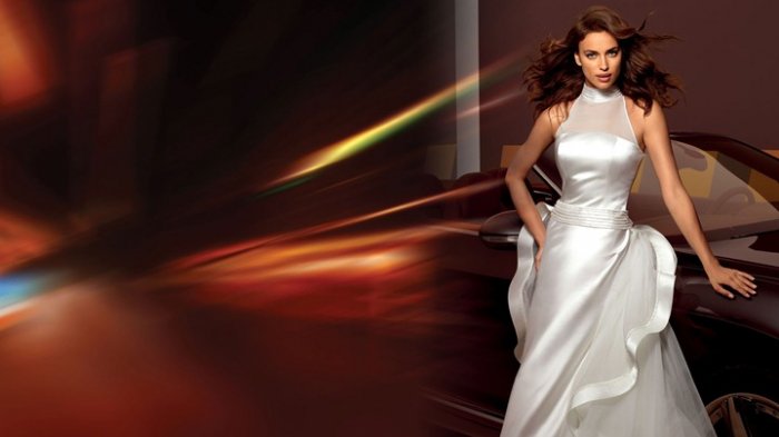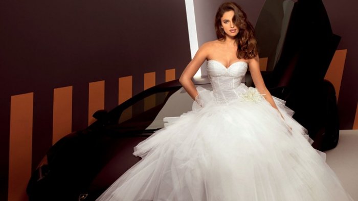 Ирина Шейк, топ-модель мира и российская фотомодель, в фотосете свадебных нарядов от модного бренда Alessandro Angelozzi. Платья с корсетами и огромными, пышными юбками и шлейфом собраны в этой фотосесии. Фотосъемки проходили совместно с эксклюзивными автомобилями класса Люкс. Сочетание красивого автомобиля и неповторимой Ирины Шейк соблазняют и анят к себе. Наслаждайтесь красотой наших, русских моделей.