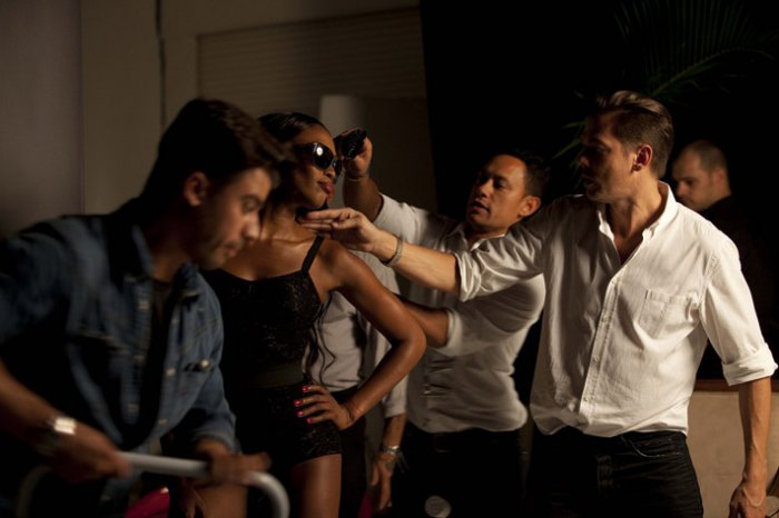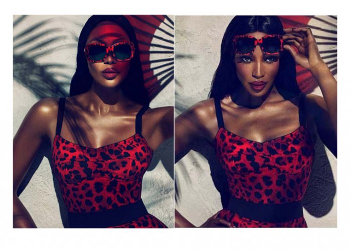 Знаменитая Наоми Кэмпбелл , в ярко-красном леопардовом купальнике демонстрирует очередную коллекцию очков Доменико Дольче и Стефано Габбана . Богемная кожа супермодели на фоне серой, блёклой стены выглядит еще ярче и ухоженнее. В данной разновидности купальника (слитый), сильно выделяется спортивная фигура Наоми , ее широкие плечи и узкие бедра. Фотосессия представлена и со стороны съемочной группы - видна работа всего коллектива над образом и стилем фотосъемки для рекламной компании.