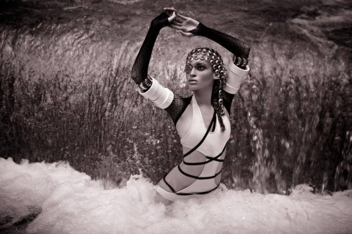 Воины в водопаде - знаменитая фотосессия топ-моделей по-американски 19 сезона. На этот раз Тайра Бэнкс совместно с Келли Катрон задумали для девушек настоящее испытание. Каждое движение, позы для моделей были сделаны с большими трудностями, ведь сильные потоки водопады так и сносили девушек с ног. Для каждой из моделей Тайра придумала свой талисман, который они, якобы должны были про рекламировать. Так, Киаре достался металл - и кажется, это одна из самых лучших фото. Лоре досталисть ракушки, в которые она была полностью обмотана, с головы до ног. Другим топ-моделям достались ткань, железо, браслеты и прочее. Лучшие фотографии продемонстрированы здесь, наслаждайтесь просмотром!