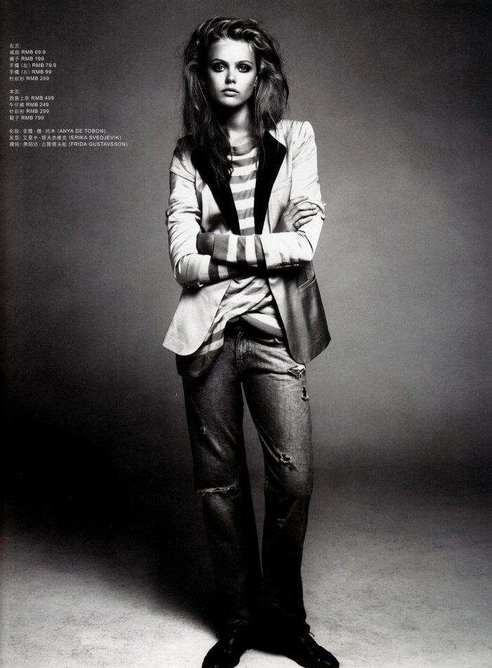 Фрида Густавссон - и вновь на подиуме шведские модели. Сейчас они стали очень популярными, точнее их внешность. Итак, немного о модели. Она родилась близ Стокгольма в 1993 году. совсем юная модель уже выступала на местных показах. Наиболее известной стала в 2008 году, когда начала сотрудничать с IMG. Это модельное агентство очень известно в Америке и по всему миру. Сразу же ее заприметили агенты таких домов моды, как Louis Vuitton и Ralph Lauren, сразу она начала выступать практически на каждом из их шоу. Затем пошли контракты с Yves Saint Laurent и Carolina Herrera. Фрида часто появляется на обложках модных журналов Elle и VOGUE, имеет большую популярность в Инстаграмм. И от представляем Вам самые красивые фотографии Фриды Густавссон.