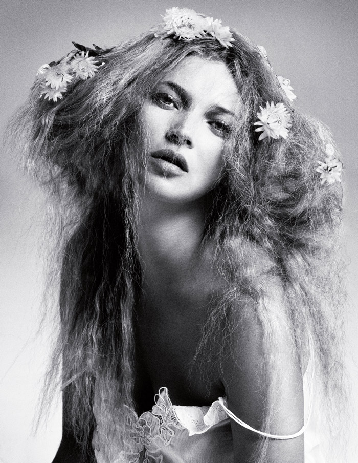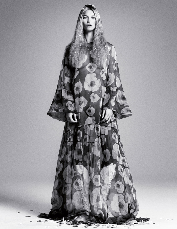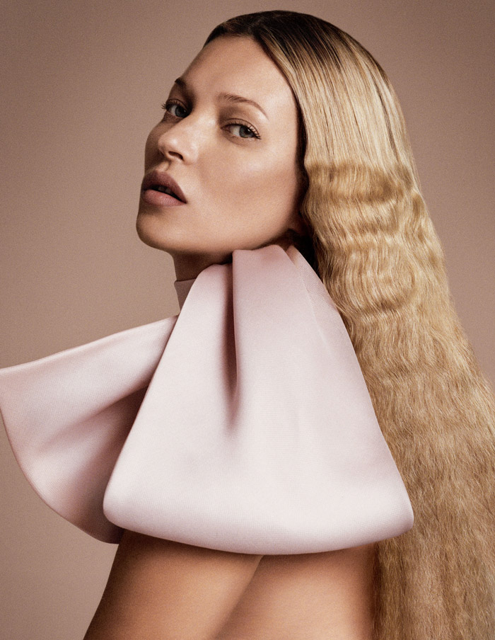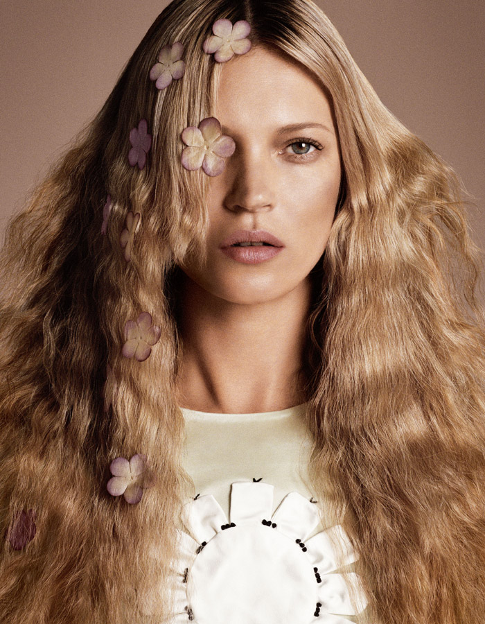 Фотограф Дниэль Дуэлл очень любит снимать Кейт Мосс в модных фотосессиях для известных глнцевых изданий. И на этот раз он вновь был во главе фотосъемки в компании с фотографом Ланго Хенци . Многочисленные фото супермодели в кутюрных нарядах от Lanvin сочетались с откровенным фотографиями модели 90-х. Особенно отчетиво снимали лицо Кейт, которое в ёё 40 лет по-прежнему молодо и безупречно. Созданное гофре на светлых волосах модели придает жеской по натуре Мосс мягкости и элегантности.