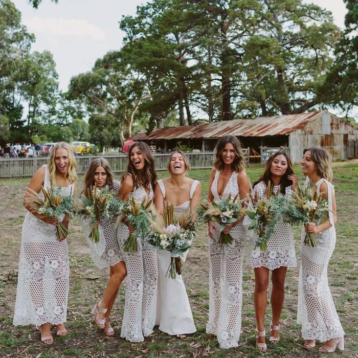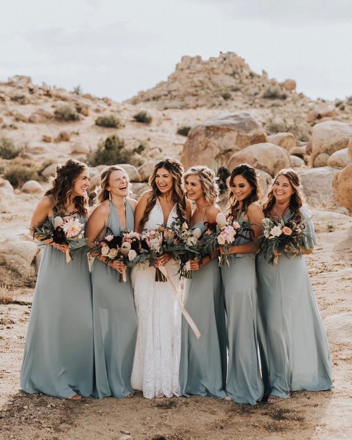 ![Blue hair Bride and Bridesmaids Sage Green]()
