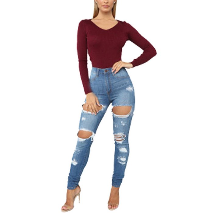 Джинсы с дырками облегающие